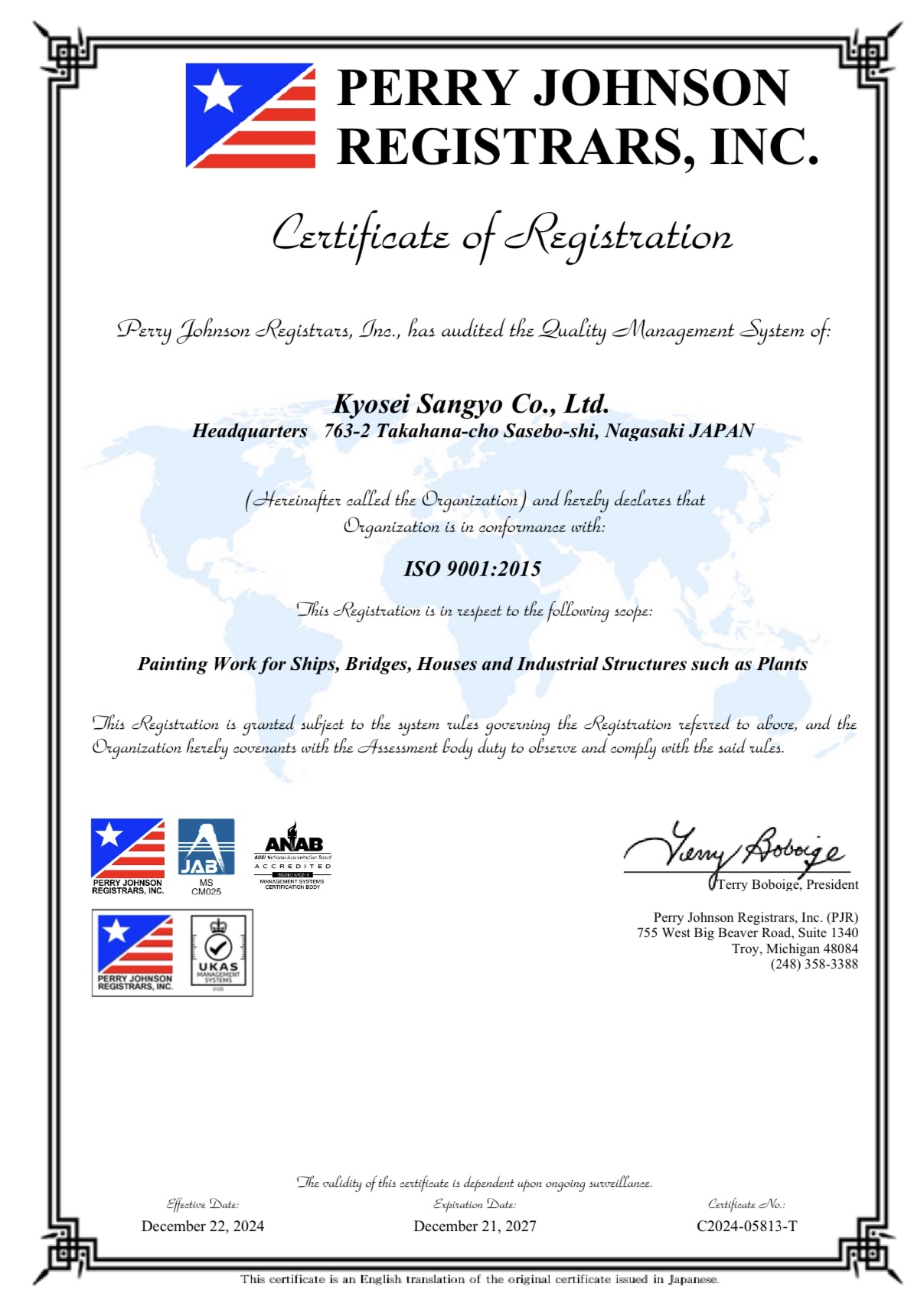 国際認証 | 国際品質規格 ISO 9001:2015 登録番号 C2024-05813 |
